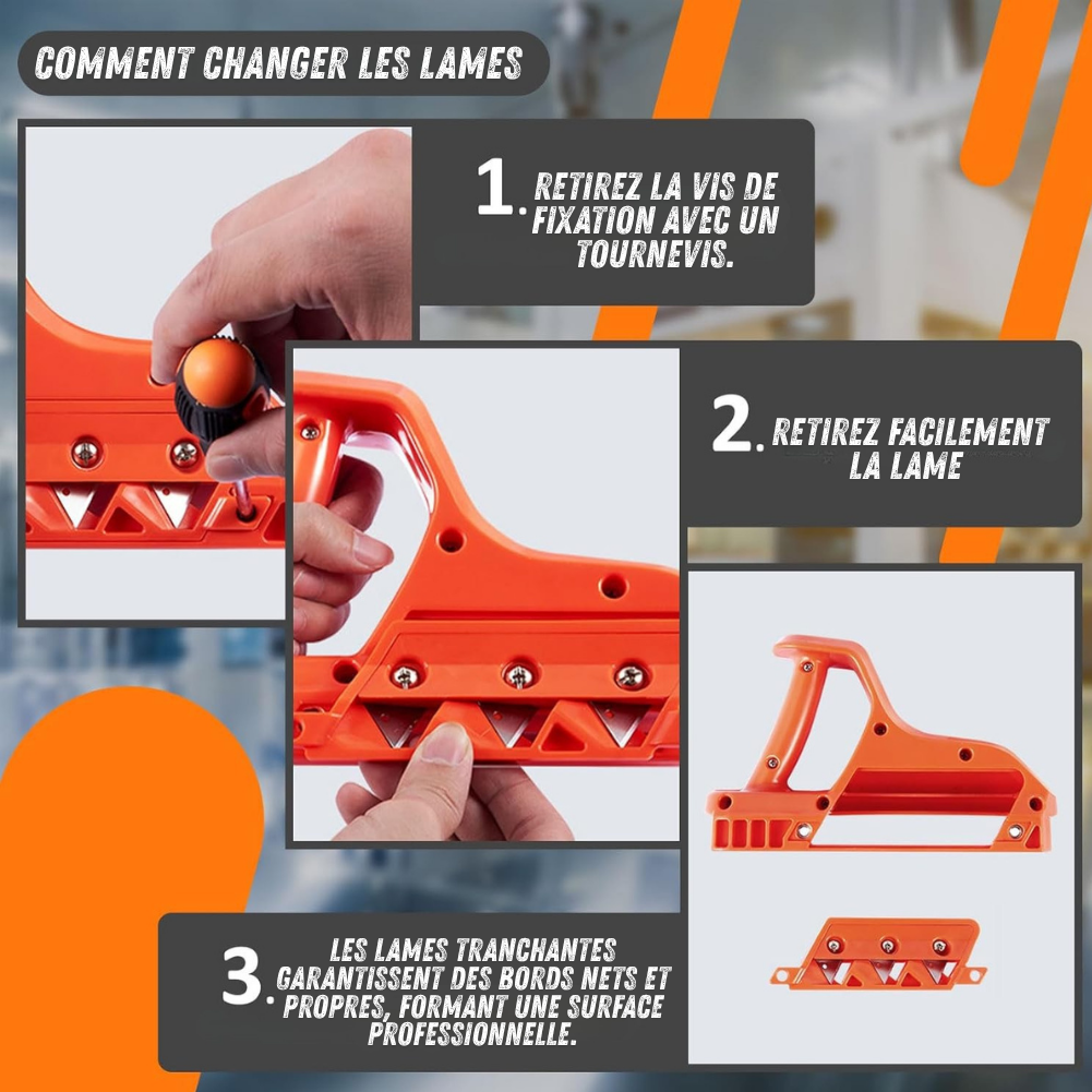 Fini les coupes irrégulières et les outils difficiles à manier, Affût Express™ transforme votre travail en résultat parfait, rapide et net dès le premier passage. Un outil puissant, ergonomique et précis qui remplace vos anciennes machines encombrantes.