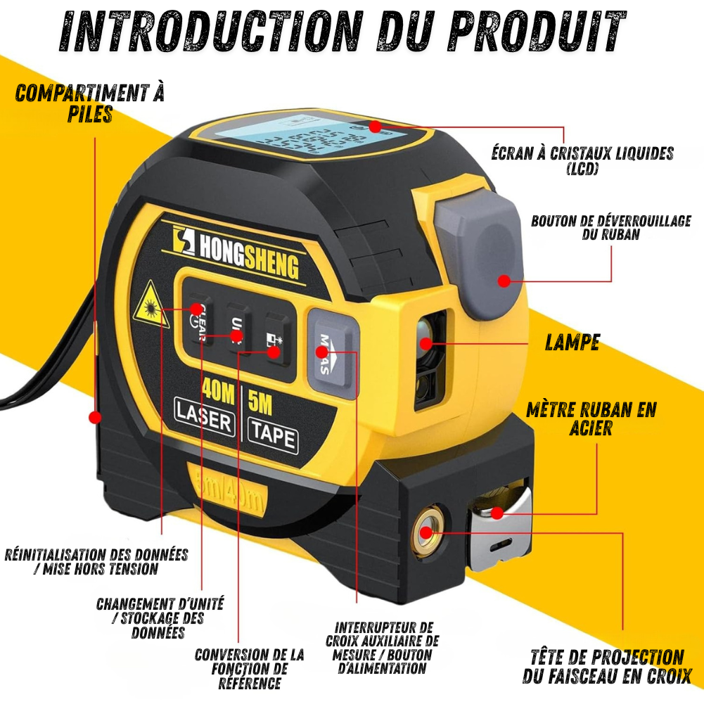 Votre nouvel allié sur chaque chantier ,Grâce à son double système intelligent (laser + ruban), vous passez instantanément de la mesure rapide à la mesure ultra-détaillée.