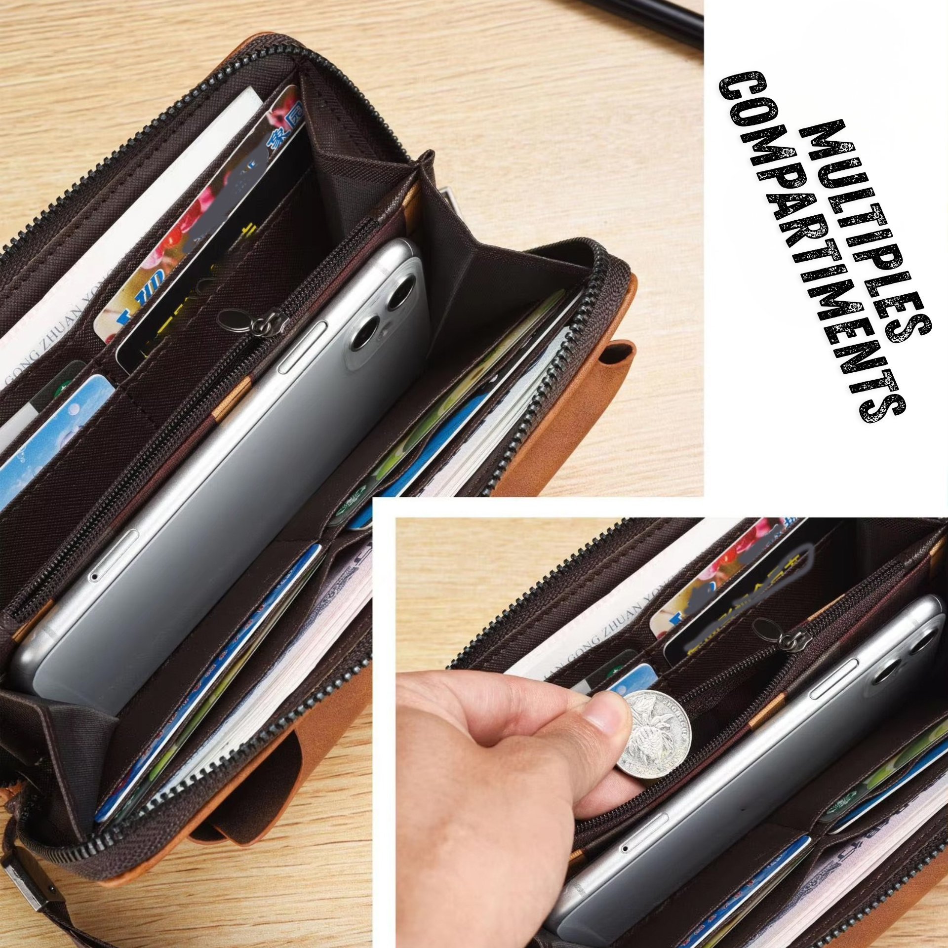 Grâce à sa fermeture zippée intégrale, vos cartes, billets, pièces et petits objets restent parfaitement sécurisés, même lorsque vous marchez rapidement, conduisez ou voyagez.