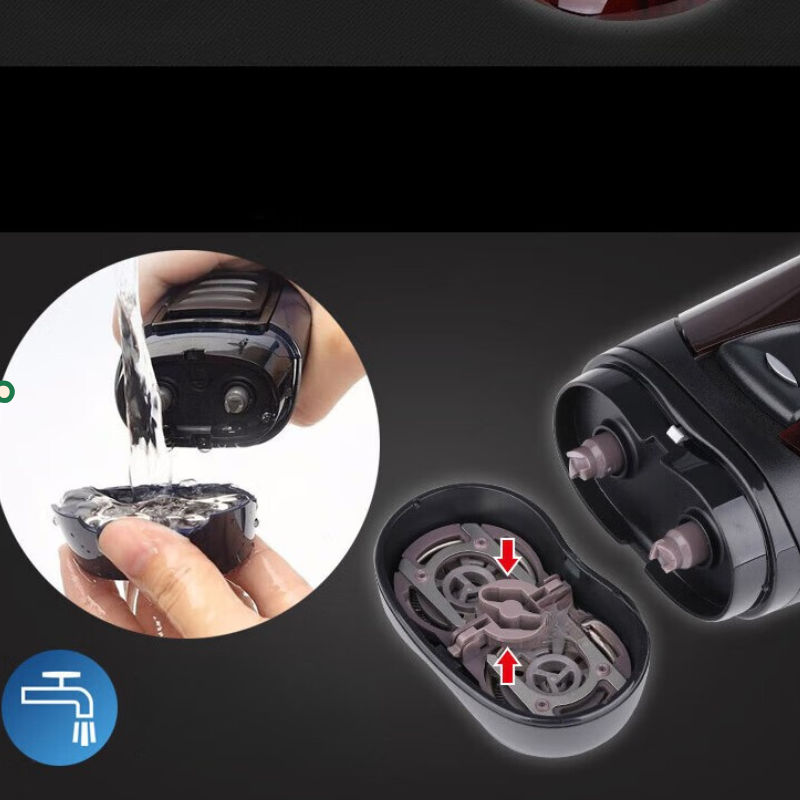 Sa tête amovible lavable à l’eau garantit un entretien simple et une hygiène parfaite après chaque rasage.