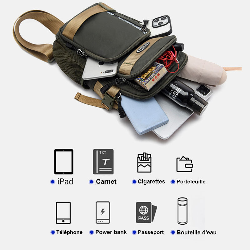Multi-poches intelligentes pour transporter téléphone, portefeuille, bouteille, lunettes, carnet…
