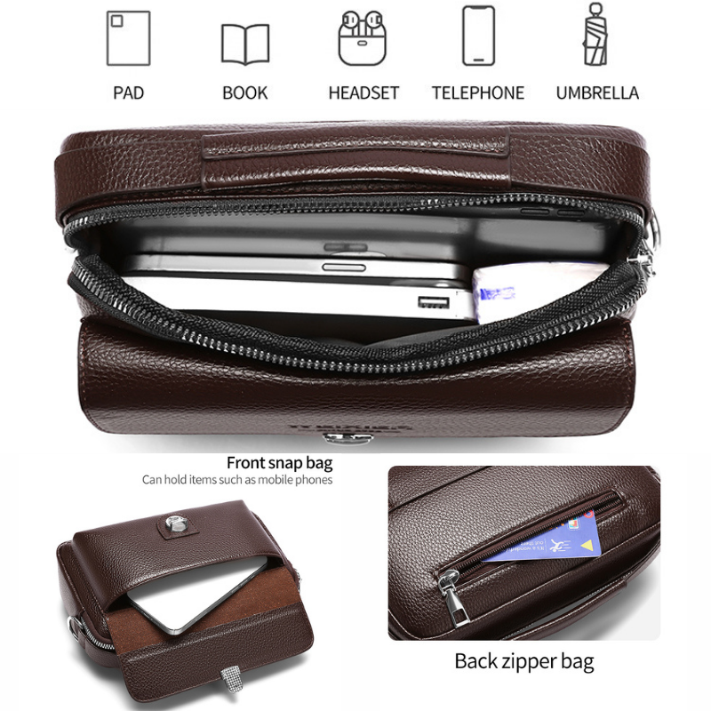 Compartiments spacieux pour ranger téléphone, clés, portefeuille et documents en toute simplicité.