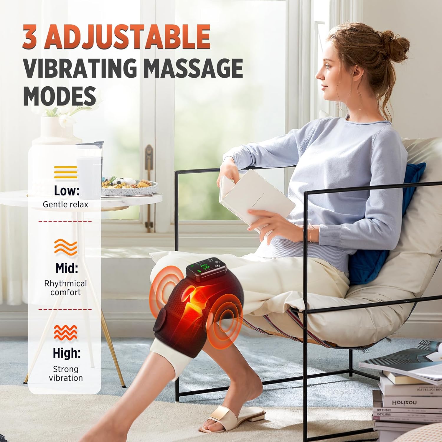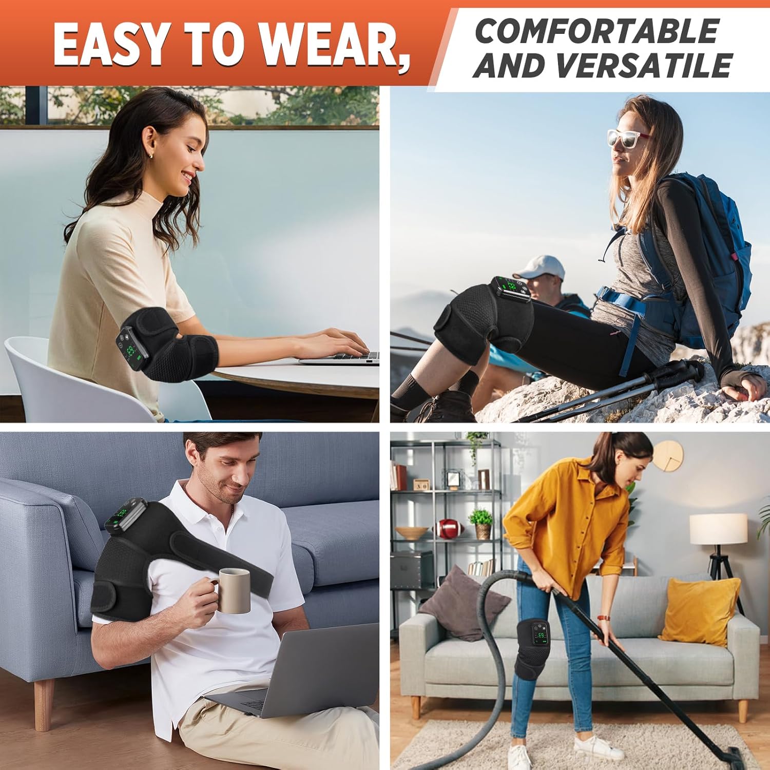 Ce soulageur express de genou combine chaleur infrarouge profonde et vibration thérapeutique pour détendre instantanément les muscles, stimuler la circulation et apaiser les douleurs articulaires.
