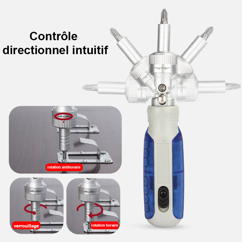 Du montage de meubles à la réparation de petits appareils, ses 14 têtes variées couvrent tous vos besoins avec efficacité.